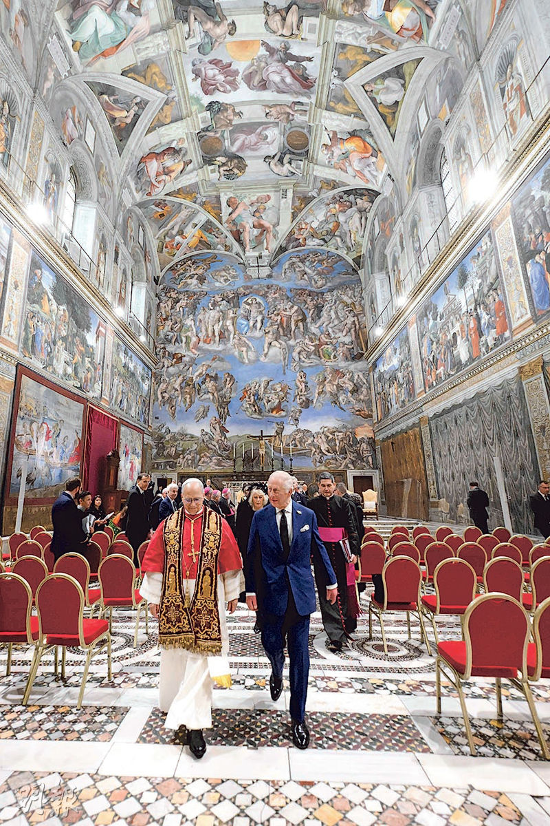【明報專訊】英王查理斯三世周四(23日)國事訪問梵蒂岡期間,與教宗良十四世一起在西斯汀教堂公開祈禱,這是聖公會與天主教分裂500年來,首名英國君主與天主教教宗一同公開祈禱。