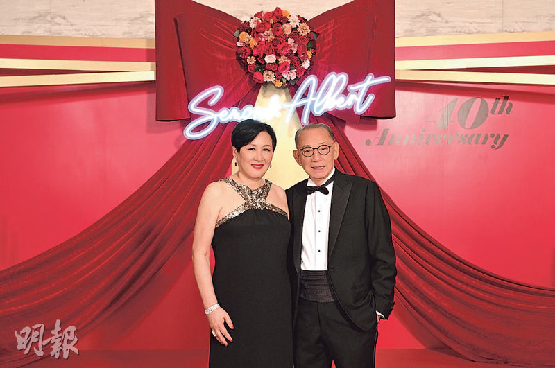 【明報專訊】英皇集團主席楊受成和太太陸小曼結婚40周年,前晚於灣仔的酒店舉辦晚宴賀「紅寶石婚」,筵開21席,宴請逾300名政商娛樂界等名人好友及旗下藝人出席,星光熠熠。楊受成讚太太萬中無一,夫妻相處要互相尊重。早前宣布做爸爸的陳偉霆因趕戲未能赴宴,楊受成表示對方之前預先報喜,已準備10安士足金金牌給BB。蔡卓妍對舊愛陳偉霆榮升爸爸送上祝福。容祖兒早前被拍到遭成龍「掃背脊」,她稱大家捕風捉影,自己沒有感覺。鍾欣潼早前因手震接受身體檢查,發現肝臟有問題,已戒酒一年多。