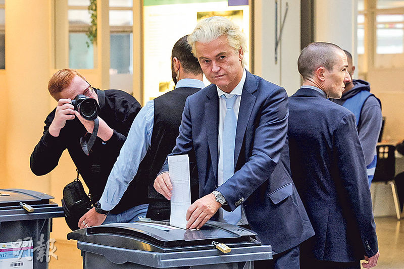 【明報專訊】荷蘭周三(29日)舉行國會大選,縱使選前民調顯示,有「荷蘭特朗普」之稱的維爾德斯領導的極右自由黨(PVV)領先,有望取得眾議院最多議席,但遠未能單獨執政,且半數選民尚未決定投票意向,選舉結果難測,加上兩個主流政黨的支持度近日與自由黨差距正縮小,並表明阻止自由黨再度執政。初步計票結果預計在香港周四早上陸續公布。《金融時報》指出,在經歷兩年極右領導政府的「試驗」失敗後,荷蘭選民預計在今次大選回歸中間路線。