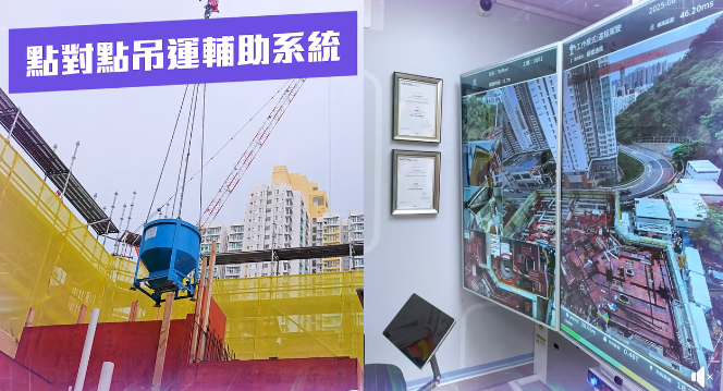 何永賢指,AI天秤系統由房委會和香港智能建造研發中心合作研發,配備多角度鏡頭、衞星定位和雷射激光技術,操作員只需在平板電腦選定目標地點,系統便會自動規劃吊運路徑,避開障礙物,並偵測吊鉤下3米範圍內有無人,系統一旦故障也可即時切換手動操作模式。她指,高空吊運建築材料,吊索不免會出現擺動,AI天秤系統能根據吊運物件的重量、搖擺幅度等進行分析,十餘秒便可逐漸穩定吊鉤,形容「技術相當於具有30年經驗的資深天秤操作員」。