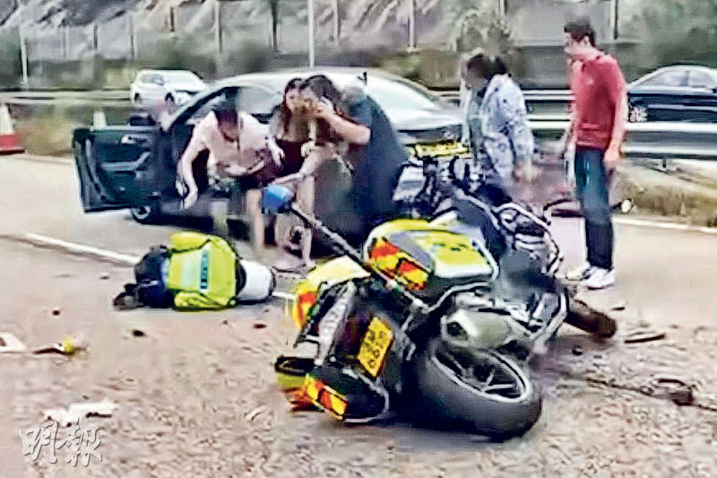 撼「拋錨」平治 鐵騎交警傷 手骨折脊椎盆骨傷 一度臥地不起