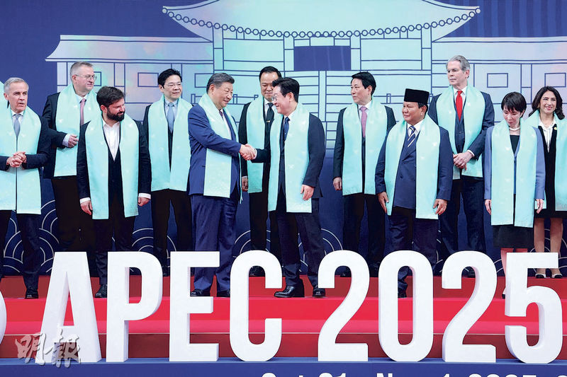 【明報專訊】在韓國慶州舉行的本年度亞太經合組織(APEC)峰會昨(1日)閉幕,21個成員經濟體領袖發表《慶州宣言》、《APEC人工智能(AI)倡議(2026-2030)》、《APEC應對人口結構變化框架合作文件》3份主要成果文件。《慶州宣言》以本次峰會「連接、創新和繁榮」三大課題為基本框架,包括貿易、投資、數碼和創新、包容性增長等重要事項的討論內容,並總結各成員對人工智能(AI)合作和人口結構變化應對的共識和合作意願,但捨棄近年同類宣言有關世界貿易組織(WTO)的表述,被指反映成員貿易政策的轉變。