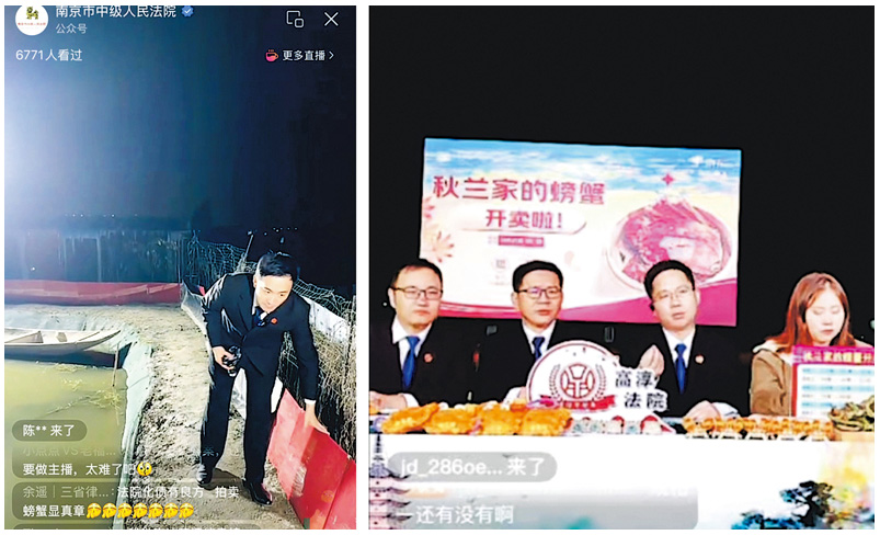【明報專訊】江蘇省南京市中級法院的微信公眾號直播間,上周五晚間轉播了一場特殊的帶貨直播。3名南京高淳區法院法官身穿工作制服,幫助涉及交通事故的債務人賣螃蟹還債。當晚有20多萬人次在線觀看,事件引發熱議。有網民認為法官不務正業,但更多網民認為法官熱心為民。