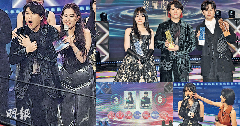 【明報專訊】無綫歌唱比賽節目《聲秀》前晚舉行《聲秀決賽 終極聲戰》,賽前兩大熱門馮熙燮(Ryan)與柯雨霏(Ophelia)首輪比賽,分別以總分149分及145分出線對決,馮熙燮選唱陳奕迅《七百年後》失誤仍奪冠,以6比3撼贏獻唱導師泳兒《葉落冰川》的柯雨霏,獲10萬元獎金;另一熱門胡子貝(Matt)獲季軍及歡眾熱選聲秀大獎。宣布馮熙燮奪冠時現場傳出噓聲,有不少網民替柯雨霏不值質疑造馬,馮熙燮表示未聽到噓聲,沒有感覺。亞軍柯雨霏在台上跟馮熙燮討論分獎金,強調只是講笑,沒有內定賽果。
