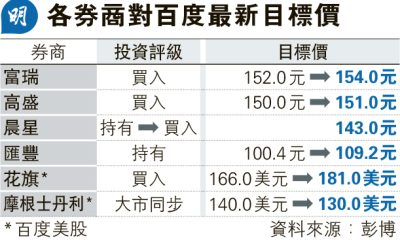 【明報專訊】港交所(0388)周三(5日)公布第三季業績,收入及其他收益和純利連續3季創出新高,績後獲多家大行上調目標價,中國銀河國際大幅上調19%至630元,為全城最牛(見表)。高盛亦將目標價上調3%至562元、維持「買入」評級,高盛報告稱,有3個因素或推動港交所上升,包括市場對於日均成交額(ADT)的共識上調、本港上市公司加快增長,以及港交所的預測市盈率倍數縮減,惟恒指及科指市盈率則上升。