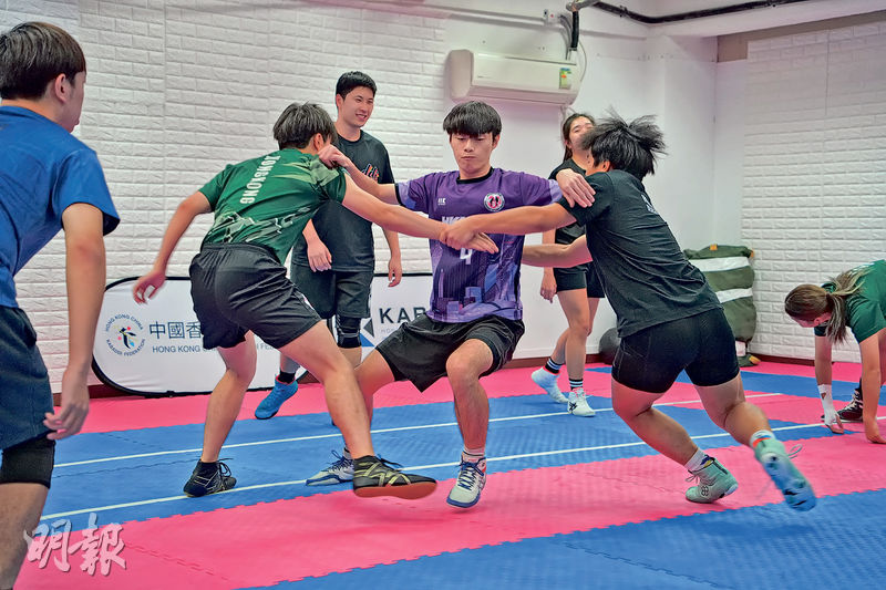 【明報專訊】廣東話有句俗語叫「一眼關七」,意思是要時刻留神四面八方,掌握周遭形勢,想不到這句俗語竟是新興運動「卡巴迪」(Kabaddi)的完美寫照。初看卡巴迪,見場上以一敵七的攻守場面,運動員之間追逐碰撞,畫面極具衝擊力,感覺有點像看欖球。但原來卡巴迪的賽例更「殘忍」,因為欖球守方衝撞的目標是撞停對方攻勢即可,卡巴迪守方卻要將對手壓制至完全無力反抗,裁判方會吹哨叫停。這種結合追逐、擒抱與格鬥技的運動,攻守皆在電光火石之間,一次過考驗運動員的體能、智力與默契。