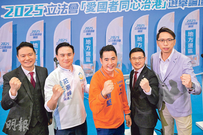 新界北地方選區選舉論壇昨早舉行,5名候選人沈豪傑、廖子聰、曾勁聰、新社聯譚鎮國和民建聯姚銘均以「新人」身分競逐兩席位。辯論環節要求候選人建議如何令區內居民支持北都發展。