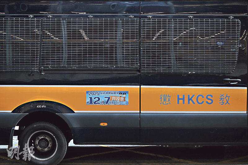 【明報專訊】政府各部門落力宣傳立法會選舉投票,Emily噚日喺高等法院及區域法院外,見到運送囚犯出入嘅囚車都有貼上12月7日投票日海報。據知,喺懲教院所等候室內都有廣播呼籲投票。懲教署回覆查詢時確認,為呼籲在囚者及探訪者行使公民權利,署方喺懲教設施內外展示宣傳海報及播放宣傳短片或廣播。署方又話,選舉當日會配合選舉處依法例喺懲教設施內設專用投票站,畀合資格在囚者投票。