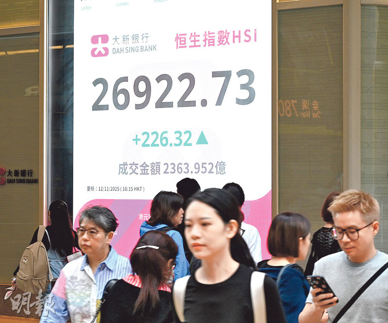 香港股票分析師協會主席鄧聲興表示,大市近日轉趨穩定,但成交不算多,加上資金轉投傳統高息股,反映投資者的風險胃納減小,傾向持盈保泰。美股亦如是,隔晚多隻AI科技股下跌而道指續創新高,他續稱,現階段投資者不會太進取於高位建倉,但同樣不會調整太深,相信低位會有買盤支持,料年底前港股仍會高位整固。