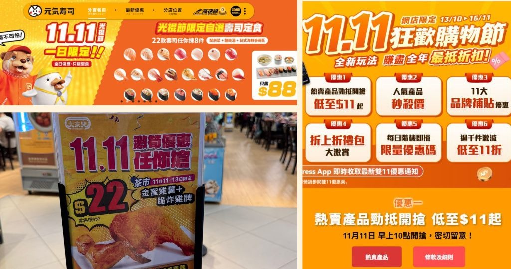 雙11優惠|豐澤搶$11電器 大家樂$22雞翼雞髀 元氣$88套餐8件壽司 (08:56)