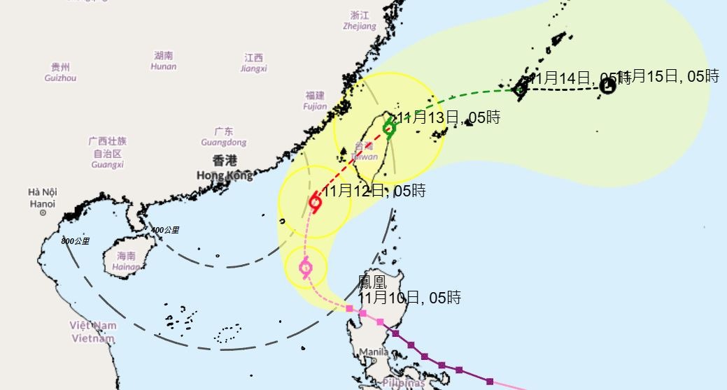 天文台今日(10日)上午8時35分表示,熱帶氣旋鳳凰已進入本港800公里範圍,天文台會在今日下午12時20分發出一號戒備信號。按照現時預測路徑,鳳凰會在南海東北部轉向偏北方向移動,在明晚(11日)至周三(12日)初時最接近本港,於香港以東約400公里或以外掠過。天文台會視乎鳳凰的強度變化、其與本港的距離及本地風力,評估是否需要改發三號強風信號。隨後鳳凰會移向台灣一帶,逐步遠離本港,並受東北季候風影響而逐漸減弱。