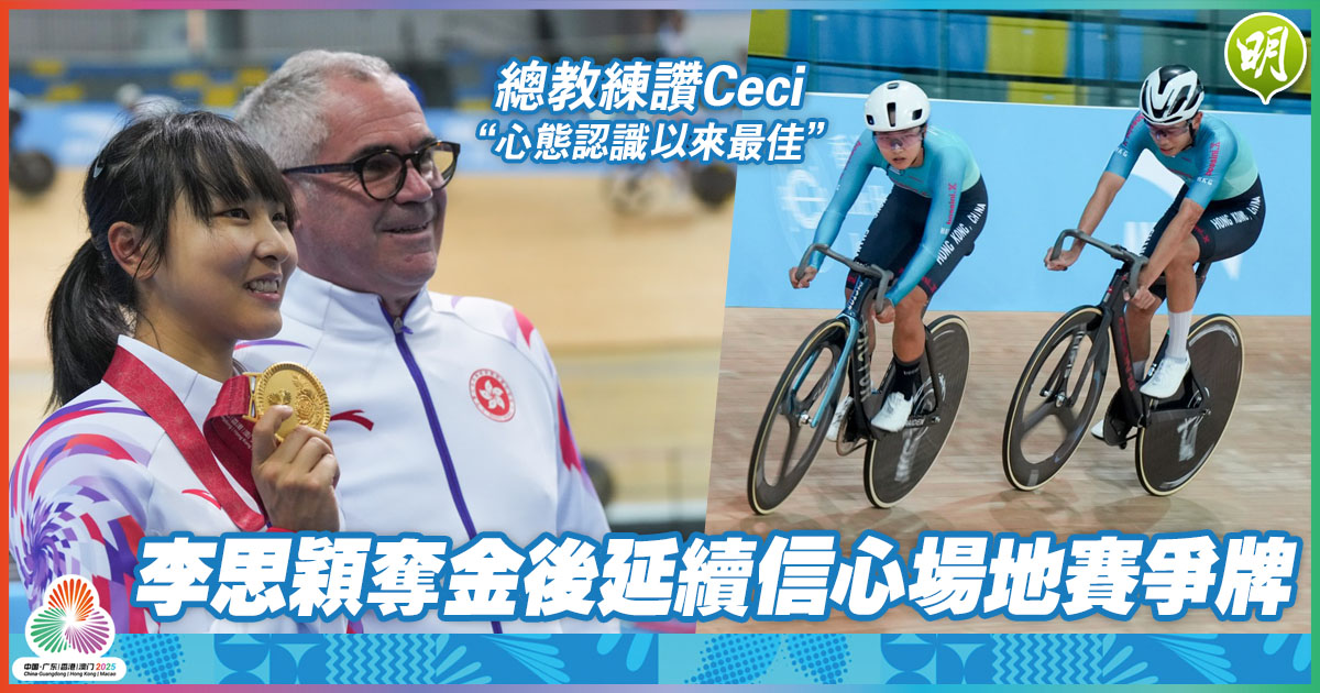 中國香港單車隊代表李思穎(Ceci)周日於粵港澳全運會公路單車女子個人賽衛冕金牌,這名24歲「小女車神」緊接將於將軍澳香港單車館出戰場地單車女子麥迪遜賽及全能賽兩項,今午(11日)受訪時表示會繼續「相信自己」,自信未來一周可有更好狀態在主場爭佳績。港隊總教練達海飛形容,愛徒目前的心態是認識8年以來最好時候。