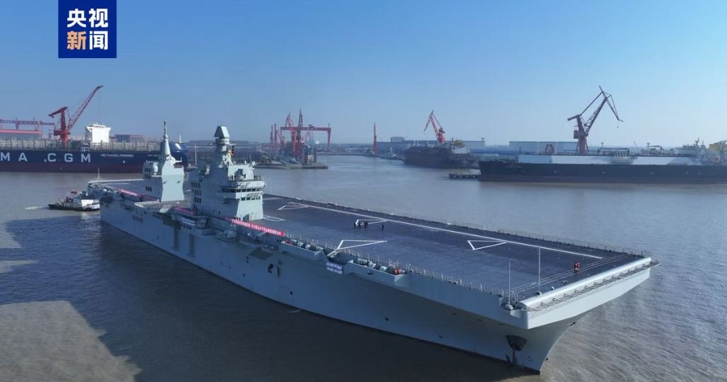 報道稱,自2024年12月下水以來,四川艦建造工作按計劃穩步推進,順利完成繫泊試驗和裝設備調試,具備出海試驗的技術條件。四川艦滿載排水量4萬餘噸,設置雙艦島式上層建築和全縱通飛行甲板,創新應用了電磁彈射和阻攔技術,可搭載固定翼飛機、直升機、兩棲裝備等。(央視)