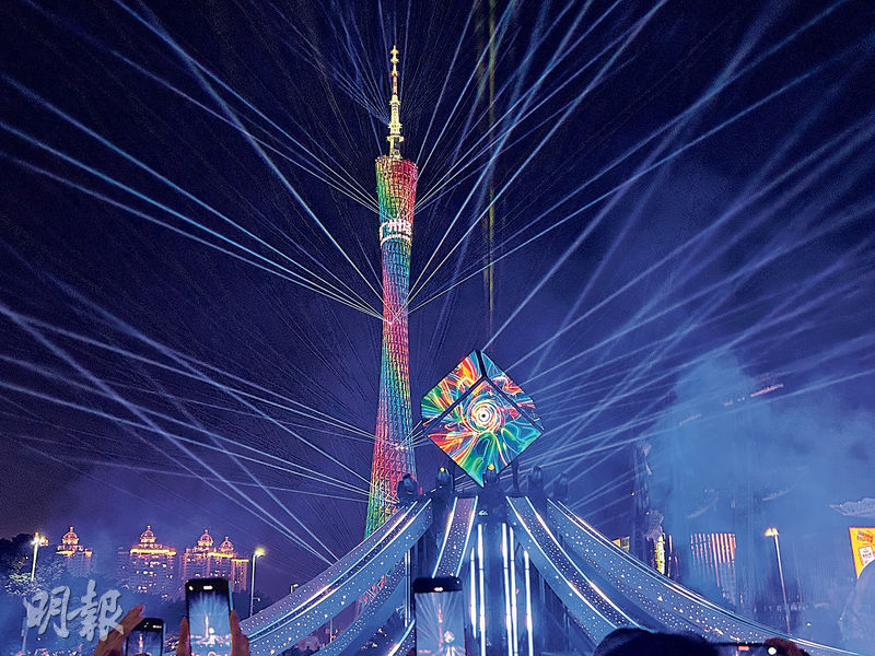 黃光烈稱,今年燈光節以「智匯灣區.悅動全運」為主題,運用更多科技手段,包括AIGC技術(人工智能生成內容技術)、視覺藝術、互動投影等,同時融合全運會元素、呼應體育競技精神。其中,花城廣場作品分為三大部分,北廣場聚焦青年藝術家與高校藝術創作,包展現運動員拼搏意志的作品;中廣場通過《光影成趣》《月光下的浪漫》等作品傳遞運動與城市共生的藝術哲思;南廣場則突出科技發展。