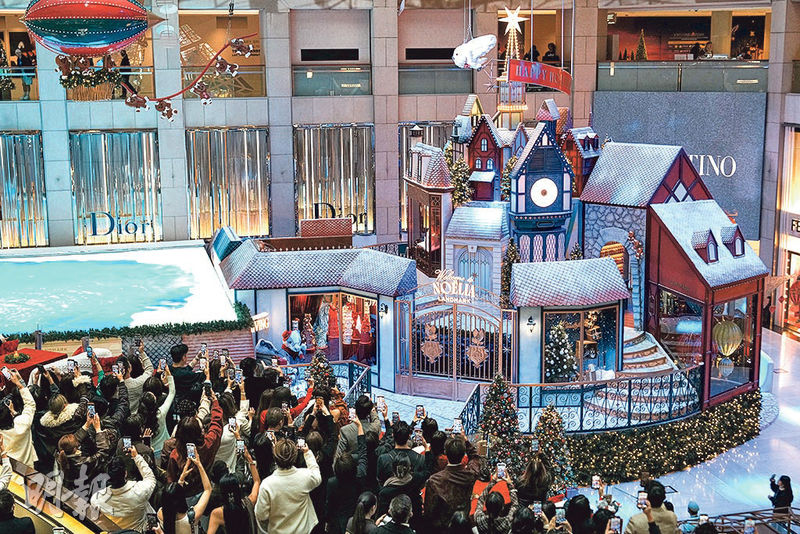 【明報專訊】聖誕節將至,城中各大商場嘅大型聖誕佈置紛紛亮相。其中中環置地廣場今年設置咗號稱歷來最大規模嘅節日裝置,喺中庭放咗一座闊30米、高11米嘅法式魔幻小鎮,裏面有個全港最大嘅互動祈願湖,畀訪客許願祈求願望成真。