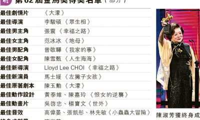 另外,86歲陳淑芳以《孤味》獲第57屆金馬獎最佳女主角,演戲逾60年,今年先後獲得金鐘獎特別貢獻獎,以及昨晚金馬獎頒發終身成就獎。她淚灑舞台,回想拍戲生涯雖然累,但從事影視是她的志趣,希望能一輩子演下去,「演藝圈這條路走下來非常困難,但我願意,願意走到不能走、演到不能演為止。」她還強調絕不漲價。