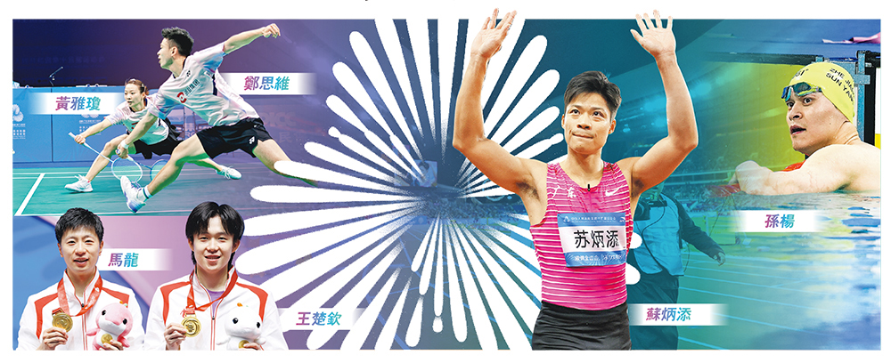 【明報專訊】粵港澳大灣區首度合辦的第十五屆全國運動會前晚閉幕,不僅開創全新辦賽模式,也見證內地體壇蓬勃發展,不僅在田徑及游泳等項目締造8項世界紀錄、13項亞洲紀錄,當中12個小項奪冠成績更超越巴黎奧運冠軍成績。而「百米飛人」蘇炳添及「雅思組合」鄭思維/黃雅瓊等國家隊老將更以此作為運動員生涯最後舞台,為今屆賽事留下經典時刻。