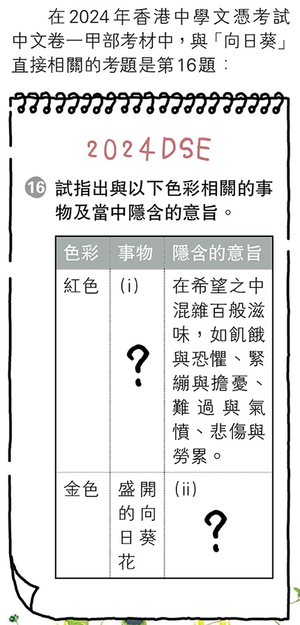 教育 IB中文:向日葵色彩的象徵意義——〈繁盛〉的IB分析(完) 發佈於 6 天 前 2025 年 11 月 25 日 By 明報 【明報專訊】眾所周知,歸納段落大意目的是提煉段落內容的焦點,並不等同結構分析,而是整理資料,有待分析。一般而言,基本的處理次序可為:先觀察段落文字篇幅的長短,再細讀內容涉及的細節,例如:時間、地點、人物,進一步找出「形散而神不散」的謀篇佈局思路。 日報新聞-相關報道: IB中文:〈繁盛〉向日葵意象分析 (2025-11-25) 相關文章:IB中文:〈繁盛〉向日葵意象分析 (2025-11-25)星笈中文 第179期 Up Next 首辦大型機械人實地賽 全球13隊伍參戰 不要錯過 展覽速遞:中西合璧的英文方塊字 繼續閱讀 贊助商 猜你喜歡 IB中文:〈繁盛〉向日葵意象分析 中文解剖師:筆鋒律動 舞者追夢昇華 經典解讀:斜槓族蘇軾萬般磨礪鑄豁達