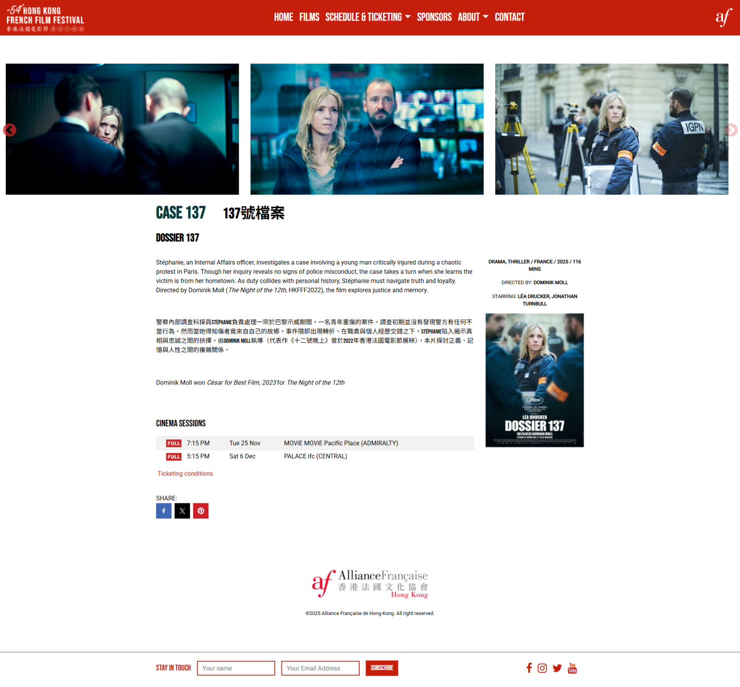 以調查法國警察處理示威為主軸的法國電影《137號檔案》(Case 137)在港臨時取消放映,翻查資料,該片今年9月內地山西平遙國際電影節放映,身兼全國政協的影星甄子丹今年在法國康城影展期間也曾出席該片首映禮。