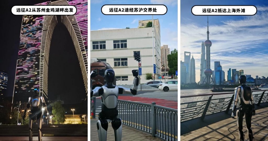 本次挑戰從蘇州金雞湖畔地標「東方之門」開始,中途穿越市區、景區、國道、省道等多種複雜路段。機械人應對瀝青馬路、瓷磚路、橋樑、盲道、斜坡及夜間照明不足等多樣化地形與環境挑戰,全程遵守交通規則,最終抵達上海北外灘。