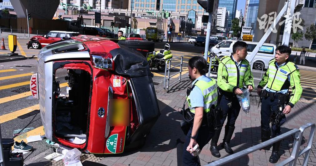 上午10時許,一輛的士駛經觀塘偉業街與偉發道交界,與一輛MINI COOPER私家車相撞,再撞向另一的士後衝上安全島,掃毁鐵欄並翻側,的士司機受傷被困車內。MINI COOPER車頭損毁嚴重,一度冒煙,另一輛的士則左邊車身凹陷。救援人員接報趕至現場,被困的士司機獲救,清醒由救護車送往伊利沙伯醫院。另一的士司機同受輕傷送院,涉事MINI COOPER女司機並無受傷,在場協助警方調查。