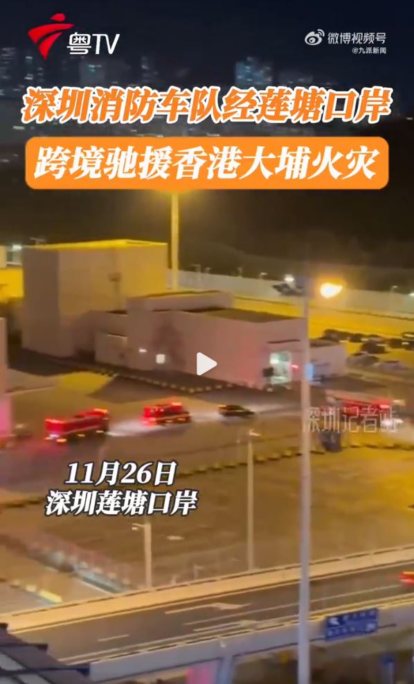 即時兩岸 「深圳消防支援香港」登熱搜榜首 (23:54) 發佈於 5 天 前 2025 年 11 月 26 日 By 明報 香港大埔11月26日宏福苑五級大火引發全國關注,許多深圳市民在社媒上載短片,顯示多輛消防車在蓮塘口岸集結,準備駛向香港,「深圳消防支援香港」登上新浪微博熱搜榜首。 廣州《南方日報》引述香港消防處表示,目前沒有向內地要求支援。 其中一段短片顯示,一部雲梯車從深圳西嶺下路駛入蓮塘口岸時,車頭登上斜坡後車尾觸地,一度疑因車輪懸空而無法移動。(綜合報道) 相關文章:大埔宏福苑五級大火微博 Up Next 馬克龍下周三訪華將晤習近平 料尋求中方再借大熊貓予法國 (13:00) 不要錯過 中日關係 | 栃木縣小山市取消訪華計劃 涉濕地教育交流 (23:45) 繼續閱讀 贊助商 猜你喜歡 嬰兒有深夜獲救 有失聯逾日 媽媽網絡尋人 外公寢食難安 短片回顧大埔宏福苑五級火 逾43小時大火連燒3天【多圖】 (19:00) 大埔宏福苑五級火 短片:外傭接僱主來電方知起火 至今未能聯絡一印傭朋友 (18:18) 大埔宏福苑火災 商店食肆提供支援【持續更新】 (16:38) 短片:宏福苑居民掩面痛哭「家沒了」 (14:55) 短片:有宏福苑居民尚未尋獲七旬母 (14:33)