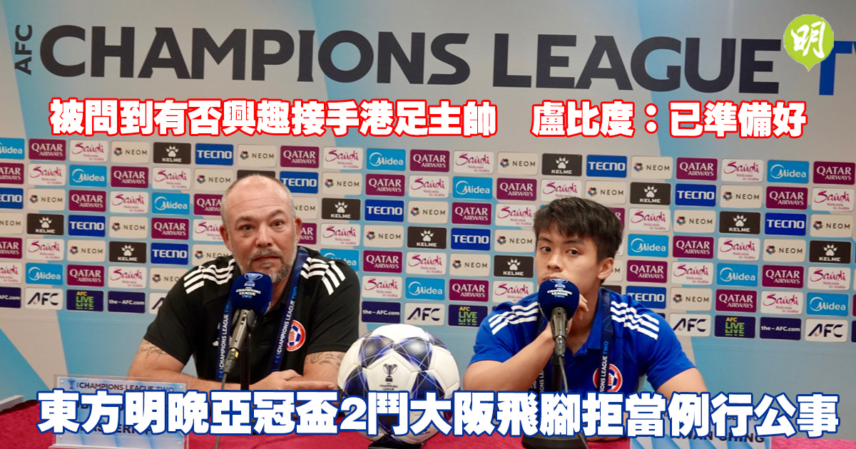亞冠盃2︱東方明晚鬥大阪飛腳拒當例行公事 被問有否興趣接手港足主帥 盧比度:已準備好 (18:36)
