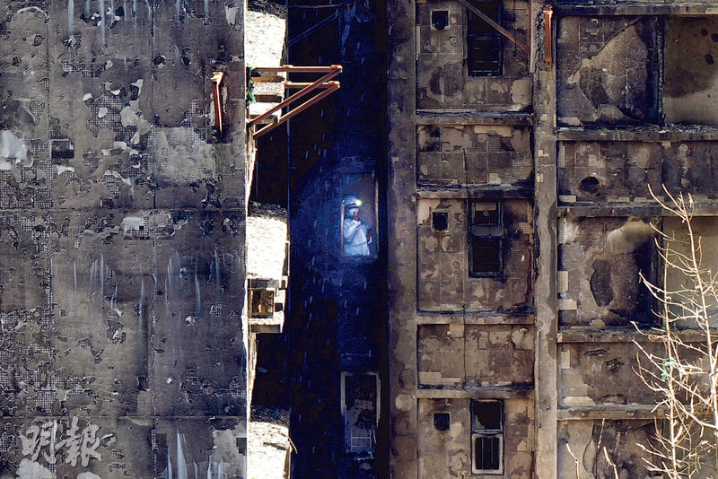 房屋局獨立審查組昨日到場視察受損大樓整體結構安全,截至昨午1時完成宏仁閣、宏道閣全幢,以及宏昌閣首兩層,經目測評估宏仁閣和宏道閣無即時危險,初步發現小量單位結構損壞較嚴重,需臨時鞏固,已動員緊急維修承建商安排。