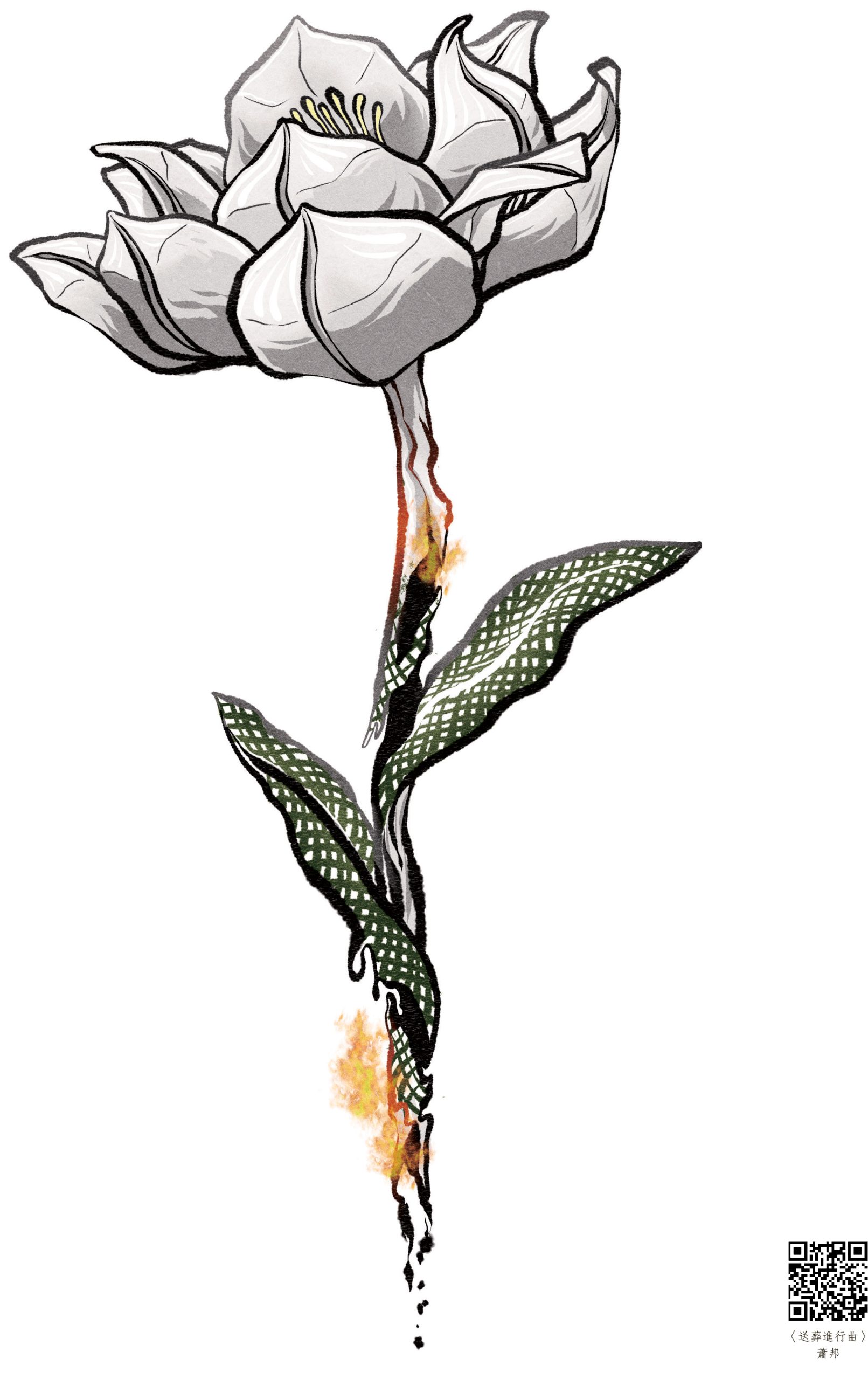 大災的教訓非常沉痛,洪思行選了幾首安魂曲,包括送給死者家屬、布拉姆斯的〈德意志安魂曲〉,與獻給殉職消防員何偉豪的〈紀念布瑞頓之歌〉,這裏置在白花旁的是蕭邦的〈送葬進行曲〉。