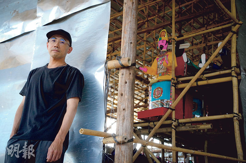 【明報專訊】竹棚、花牌、戲偶、粵劇、盤菜席——1個星期後將會於錦田鄉酬恩建醮儀式中再次歸位。每隔10年,鄧國騫都從截然不同的角度參與酬恩建醮,由童年的嬉戲,到青年的矛盾,再到如今的籌備工作,作為錦田圍村仔,同時是藝術家的他,在傳統文化、鄉委制度架構與村民的人情脈絡中,摸索着屬於自己的身位。從錦田市中心走10分鐘便能抵達周王二公書院,離遠望去,約5層樓高的巨型醮棚聳立其間。12月13日起,這裏將一連6天舉辦第34屆錦田鄉酬恩建醮。酬恩建醮儀式10年一屆,由清朝開始保留至今,已有至少340年歷史,承載圍村家族的記憶。