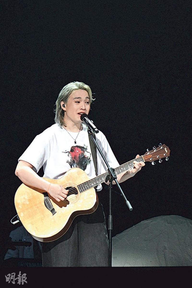 【明報專訊】MIRROR成員柳應廷(Jer)假亞博舉行兩場個人騷《Jer Lau“The Shape of Breathing”Live 2025 》,前晚開鑼,開場時有默哀儀式,表演內容也有調整。柳應廷為呈現寫了7年的音樂劇本,在舞台設計及歌單上花了不少心思,以掛在台中央半空的巨型心臟裝置為主軸,配不同效果及插圖,並以不同顏色及款式的長衫造型敘述故事。柳應廷前晚以歌會友,不多說話,並為帶病上陣向觀眾道歉,拎結他自彈自唱時,透露盼藉今次演唱會找回初心。