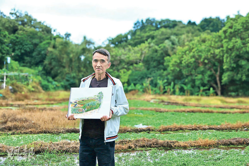 【明報專訊】今年63歲、在川龍土生土長的文哥,笑言年少時不愛讀書愛畫畫,「以前在貫文學校(現為貫文空間)讀書,那時學生不多,學校採用複式教學,即是兩個年級在同一班房上課,老師會輪流教不同年級,所以有很多自修溫習的時間,而我就會偷偷畫畫」。