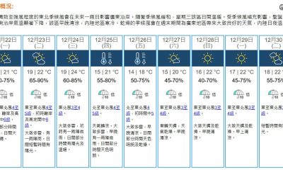 即時熱點 天氣|天文台:有陽光及乾燥 日間最高20°C (08:17) 發佈於 1 週 前 2025 年 12 月 15 日 By 明報 上午8時,天文台錄得氣溫16.2°C,相對濕度54%。紅色火災危險警告現正生效。 乾燥的東北季候風正影響廣東沿岸。本港今早(15日)清涼,市區氣溫降至15°C左右,由於天朗氣清及風勢較弱,新界部分地區輻射冷卻明顯,氣溫降至12°C或以下。此外,一道雲帶覆蓋南海北部。 本港地區今日部分時間有陽光及乾燥。早上清涼,日間最高氣溫約20°C,今晚大致多雲。吹和緩東至東北風。 展望未來一兩日部分時間有陽光,氣溫回升,但內陸地區日夜溫差較大。接近周末大致多雲。(天文台) 相關文章:天文台天氣天氣速遞 Up Next 天氣|天文台:周三大致天晴乾燥 市區最低19°C (21:08) 不要錯過 短片:悉尼槍擊案 英勇市民搶槍片段曝光 獲讚「拯救很多性命」 (10:58) 繼續閱讀 贊助商 猜你喜歡 天氣|天文台:日間部分時間有陽光 最高22°C (08:32) 天氣|今日天晴乾燥 市區最高氣溫料25°C 聖誕節料早晚清涼 (09:12) 天氣|平安夜料溫暖 聖誕節市區氣溫最低15°C Boxing Day 14°C (20:15) 天氣|天文台:日間乾燥及溫暖 最高25°C (09:46) 天氣|天文台:日間部分時間有陽光 最高23°C (08:46) 天氣|天文台:日間乾燥 晚上漸轉多雲 (08:20)
