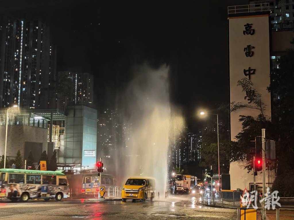 即時港聞 觀塘協和街爆水管 水柱射上半空 (00:25) 發佈於 1 個月 前 2025 年 12 月 20 日 By 明報 昨晚(19日)約11時,觀塘協和街近康寧道有水管爆裂,水柱由行車線射上約15米半空,沙石與水沿協和街流向聯合醫院方向。受爆水管影響,現場部分行車線封閉,途經車輛均被噴出的水淋濕,水務署人員到場關水掣。現場消息指,修路工程進行期間,疑將地下一條約600毫米食水管鑿穿。 相關文章:水柱爆水管編輯推介 Up Next 秀茂坪藥行夾萬內10萬元現金不翼而飛 (20:52) 不要錯過 中九龍繞道(油麻地段)明日早上十時通車 陳美寶主持通車儀式 (09:10) 繼續閱讀 贊助商 猜你喜歡 皇后大道西爆水管噴3米高水柱 (10:23) 演藝學院食水管爆裂 (10:21) 馬頭圍道庇利街交界爆水管致路陷 部份行車線已封閉 (15:31) 葵涌和宜合道爆水管 水務署正全力搶修 爭取今晚完成水管維修 (12:44) 油麻地爆水管 普慶廣場花園及逸東酒店餐廳水浸 (23:07) 屯門三聖街鹹淡水管齊爆 附近一帶今晚維修 約11時起暫停食水供應 (17:30)