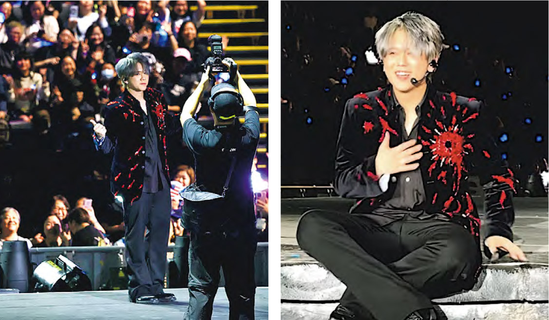 【明報專訊】姜濤前晚在亞博舉行第5場個人騷,獻唱《DUMMY》後,原本緊接演繹《鏡中鏡》,不過現場突然跳電。姜濤冷靜處理,先對監製說他的耳機無聲,聽不到監製講什麼,台上的舞蹈員保持彎腰、跪地等姿勢,他叫眾人先起身,「冇音樂接唔到落去,我哋綵排都冇吖……呢個唔係整蠱嚟嘛?」姜濤走近台邊了解原因,獲告知場館跳電,然後笑說:「所以我耳機冇聲係啱嘅,咁考我臨場反應喎!都跳(電)得啱時候,完成咗一首歌先跳。」