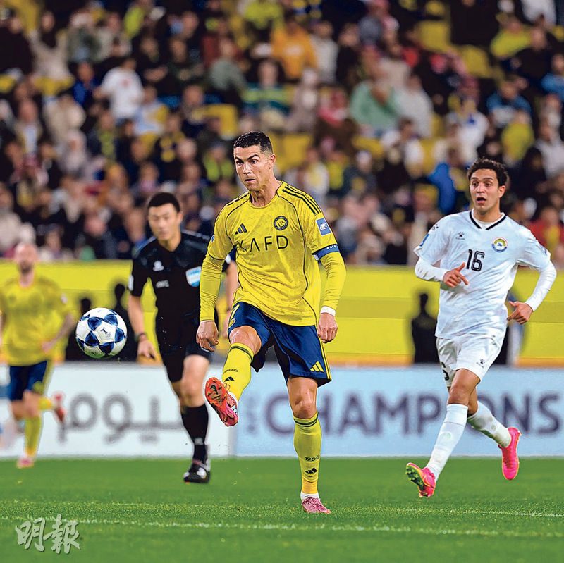 【明報專訊】40歲葡萄牙隊球星基斯坦奴朗拿度(C朗)昨首次在亞冠盃2亮相,為沙特聯勁旅艾納斯於D組最後一輪分組賽上陣半場貢獻1次助攻,加上法國國腳翼鋒京士利高文梅開二度,助球隊主場5:1大勝伊拉克球隊艾祖拉,6戰全勝強勢首名出線16強。