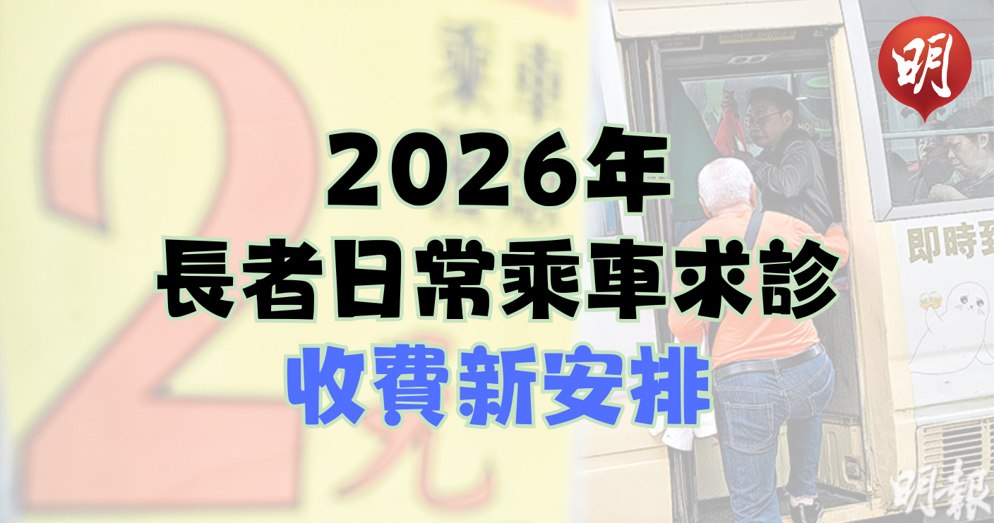 踏入2026年,長者留意4月起2元公共交通乘車優惠將改為「兩元兩折」。有長期病患的長者,若需要定期到公立醫院覆診及取藥,收費亦有會增加。本文整理相關資訊。