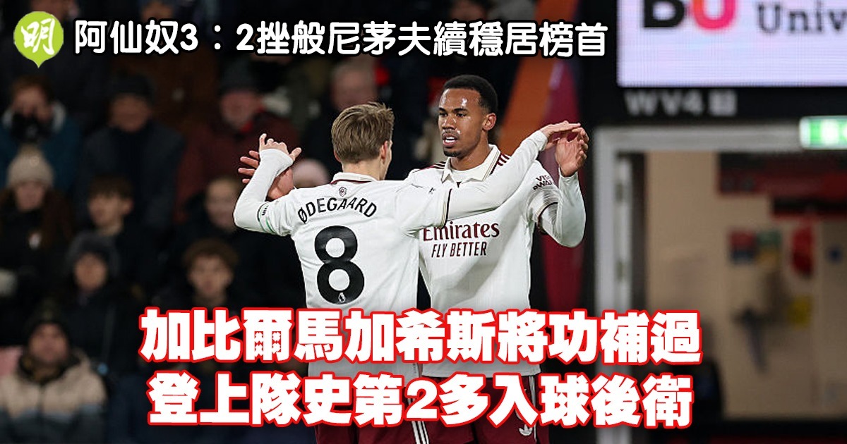 英超|阿仙奴3:2挫般尼茅夫續穩居榜首 加比爾馬加希斯將功補過登隊史第2多入球後衛 (17:35)