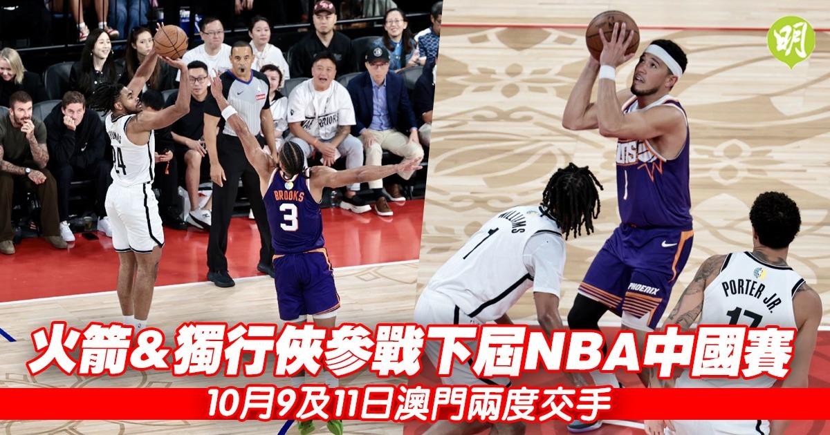 NBA賽會今(6日)宣布,下屆NBA中國賽將由侯斯頓火箭與達拉斯獨行俠出戰,於今年10月9及11日在澳門威尼斯人綜藝館上演兩次季前賽。