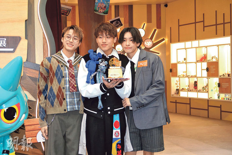 【明報專訊】ViuTV選秀節目《全民造星VI》亞軍陳瑨羲(Ian Hannz)與11強關曉隆(Bosco Kwan)、黃日禧(Dave)昨日出席商場活動。大會送蛋糕補祝Ian Hannz本月6日22歲生日,全場大合唱生日歌外,Bosco與Dave左右夾攻送吻,壽星驚喜笑不停。Ian Hannz開心首次獲這麼多人唱歌慶生,透露生日當天留家休息,跟家人切蛋糕,「獲亞軍已是好好的生日禮物,感覺很圓滿,願望自己和身邊人身體健康和開心」。