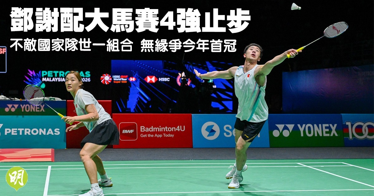 世界羽聯(BWF)千分級的馬來西亞羽毛球公開賽今(10日)演4強階段,港隊星級組合「鄧謝配」鄧俊文/謝影雪於混雙大戰以局數0:2不敵國家隊「世一」組合馮彥哲/黃東萍,無緣爭取新一年首冠。