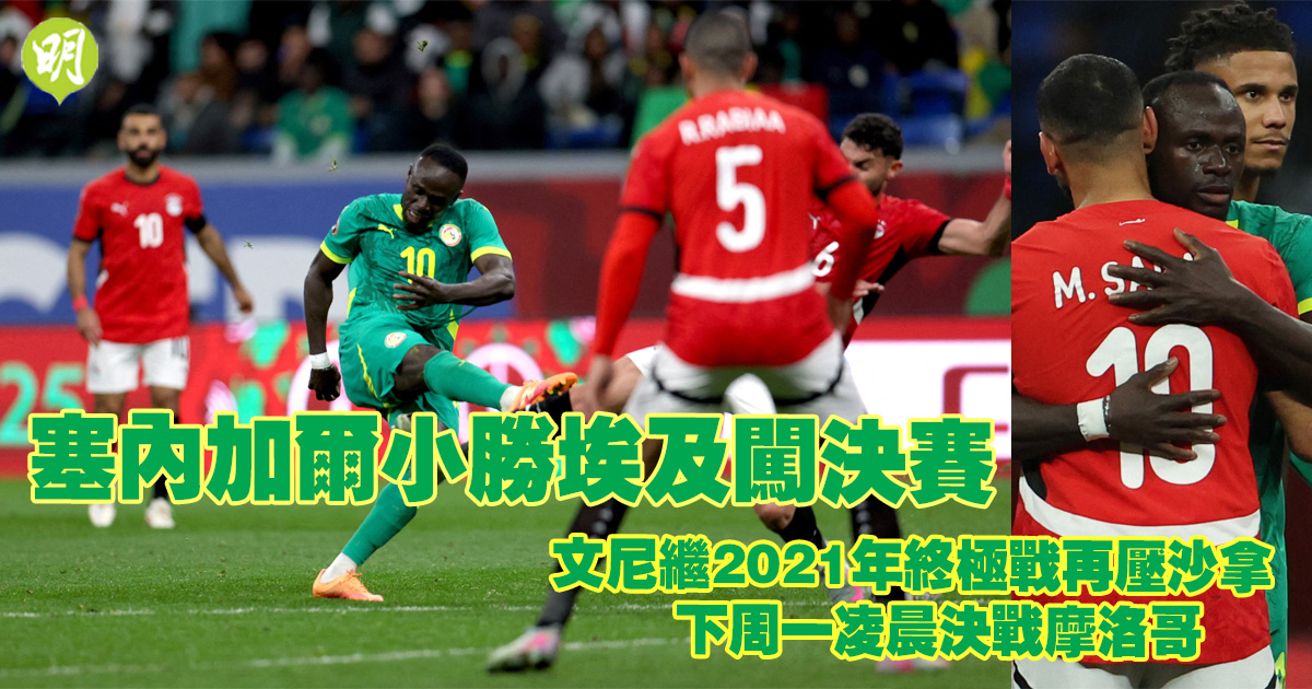 非洲國家盃今晨(15日)決出決賽席位,前屆冠軍塞內加爾藉球星沙迪奧文尼下半場末段攻入奠勝球,在4強以1:0氣走7屆盟主埃及隊,將於下周一凌晨與在極刑戰擊敗尼日利亞隊的東道主摩洛哥隊爭霸。