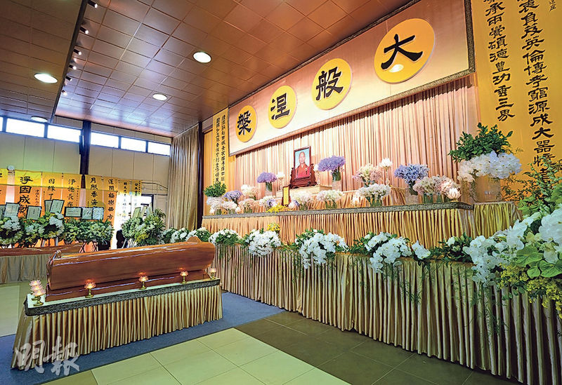 【明報專訊】大嶼山寶蓮禪寺第八代住持淨因大和尚上月22日圓寂,終年62歲。寺方昨在寺內大會堂舉行追思讚頌大典,多名官員和僧侶合唱佛寶歌悼念,佛教筏可紀念中學師生為其唱頌《送別歌》。典禮結束後隨即封棺,今早移送大嶼山蓮花山海會靈塔荼毘(火化)。