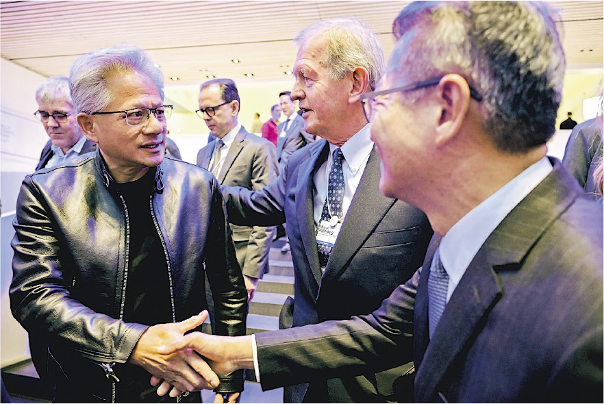 【明報專訊】喺瑞士達沃斯舉行嘅世界經濟論壇年會活動,各界不同政商領袖聚首,財政司長陳茂波噚日就話喺當地參與咗多場餐會及交流會推介香港,其間遇到英偉達(Nvidia)行政總裁黃仁勳,兩人握手寒暄。