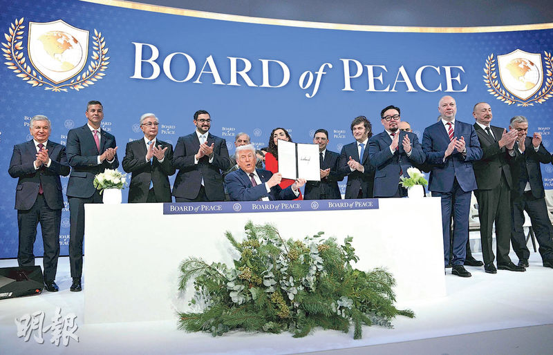 【明報專訊】美國總統特朗普周三(21日)撤回以關稅威脅奪取格陵蘭後,周四續留在瑞士達沃斯,主持由其成立、聲稱旨在解決國際衝突的「和平理事會」創會憲章簽署儀式。約有35國承諾加入,包括沙特阿拉伯、卡塔爾、阿聯酋、埃及、以色列等與特朗普友好的中東國家,但英國外相顧綺慧昨表示,由於該理事會已遠超最初聚焦在以哈停火初衷,且俄羅斯可能參與,因此英國不會加入該理事會。