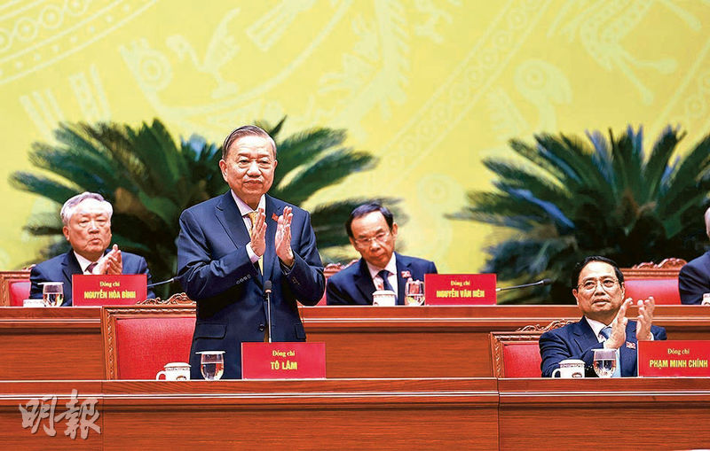 【明報專訊】越南共產黨第十四次全國代表大會周五(23日)閉幕,越共總書記蘇林全票連任,中共總書記習近平致電祝賀,但暫時未知蘇林會否如此前所傳兼任國家主席。然而新一屆越共中央政治局的名單中,原國家主席梁強和原政府總理范明政都出局,二人未有當選中央委員。原國會主席陳青敏和原越共中央書記處常務書記陳錦秀則分別留在政治局,排名升至第二和第三位——其中陳錦秀再次當選連任中央書記處常務書記,陳青敏的角色則未知會否之後再調整。