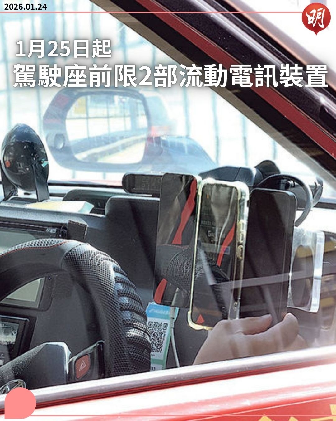 駕駛時放置流動電訊裝置新法規明(25日)起生效,司機駕駛期間,前方不可放置多於兩部流動電訊裝置(即流動電話、平板電腦或手提電腦),裝置尺寸及放置地方亦受到規管。本文整理流動電訊裝置新法規的資訊供讀者參考。