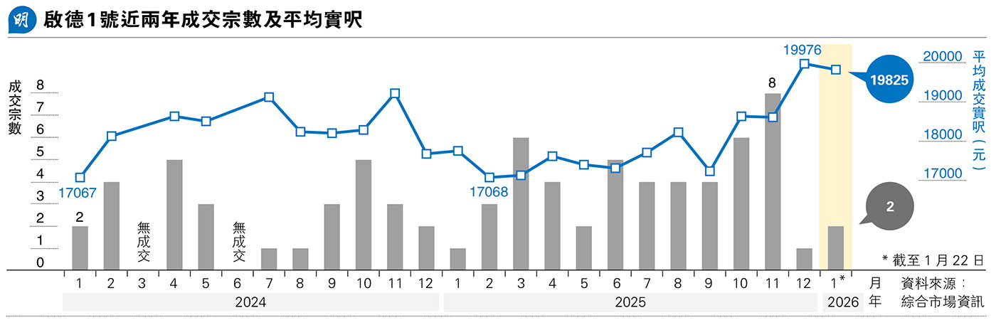 施續指出,啟德近日二手市况隨大市回升,加上區內租賃成交活躍,去年錄逾2000宗租賃成交,反映市場對區內住屋有一定需求,吸引用家、投資者留意區內的一、二手樓盤,料旺勢有望在農曆新年後仍可維持。