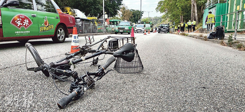 現場所見,涉事車輛為Kia Sorento柴油SUV,屬商用車登記車款,其擋風玻璃破裂,頭冚凹陷,車尾留有單車輪胎及一對鞋,車輛前方路旁留有血迹,嚴重損毁單車翻側於過路處外約20米,兩車輪被撞飛甩脫,警方封鎖部分行車線蒐證,案件由新界北總區交通部特別調查隊跟進。據悉,SUV沿綠燈行車,撞倒「紅公仔」橫過馬路單車。