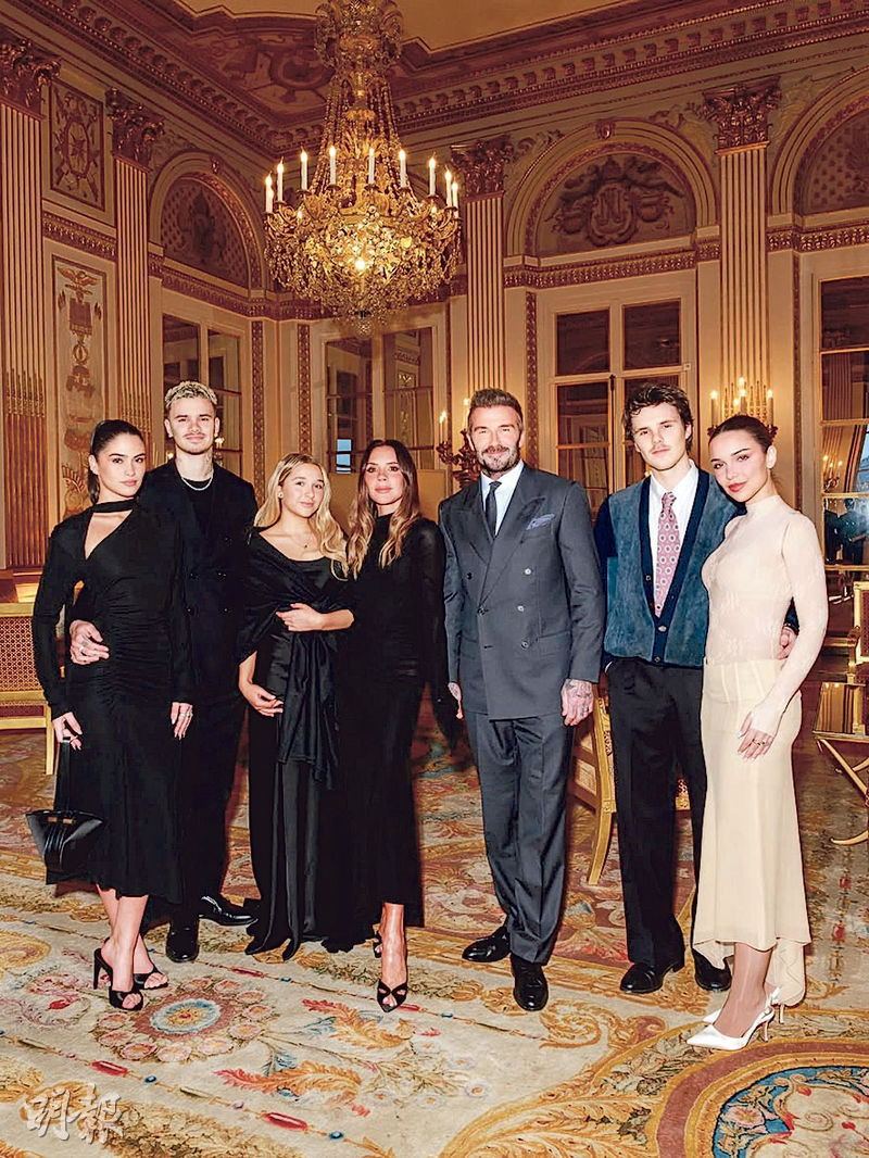 【明報專訊】英國「萬人迷」碧咸(David Beckham)的大仔布魯克林(Brooklyn Beckham),早前撰寫長文控訴父母一直以來操控他,重視碧咸品牌多於一切,並指摘母親維多利亞(Victoria Beckham)企圖破壞他與演員妻子妮歌拉佩斯(Nicola Peltz)的關係;由女團辣妹(Spice Girls)成員轉型成為時裝設計師的維多利亞,事發後前日首度公開露面,她獲法國文化部頒授「藝術與文學騎士勳章」,老公碧咸帶同兒子羅密歐(Romeo Beckham)與告魯斯(Cruz Beckham)及么女哈七(Harper Seven)到場支持,兩子的女友亦有同行,唯獨布魯克林夫婦繼續「失蹤」。維多利亞透過社交平台分享了多張頒獎禮上的照片,除了跟家人的合照,還有「惡魔編輯」之稱的Anna Wintour、超模Helena Christensen、《完美物質》狄美摩亞(Demi Moore)及開雲集團老闆皮諾(François-Henri Pinault)、LVMH太子爺安東阿爾諾(Antoine Arnault)等到場見證維多利亞受勳,並出席了隨後的慶功派對。